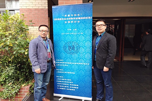 本网讯 2015年10月31日,由教育部高等学校英语专业教学指导分委员会和上海市外文学会主办,上海师范大学协办的“质量与特色——《英语类专业本科教学质量国家标准》全国研讨会”在上海召开。365官网冯光武教授及潘鸣威博士受邀参加了此次会议。