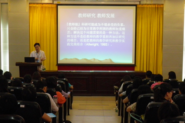 本网讯 5月18日下午两点半,“学术论文写作与教师发展研讨会”第四场会议在七教水上报告厅举办。主讲人英文学院教授欧阳护华为到场的师生们分享自己在行动研究与课堂研究方面的见解,给教师的持续发展提供了有益经验。
